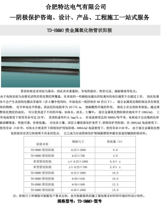 上一篇:HTD-JDB接地保护器产品 下一篇:HTD-MMO贵金属氧化物管状阳极