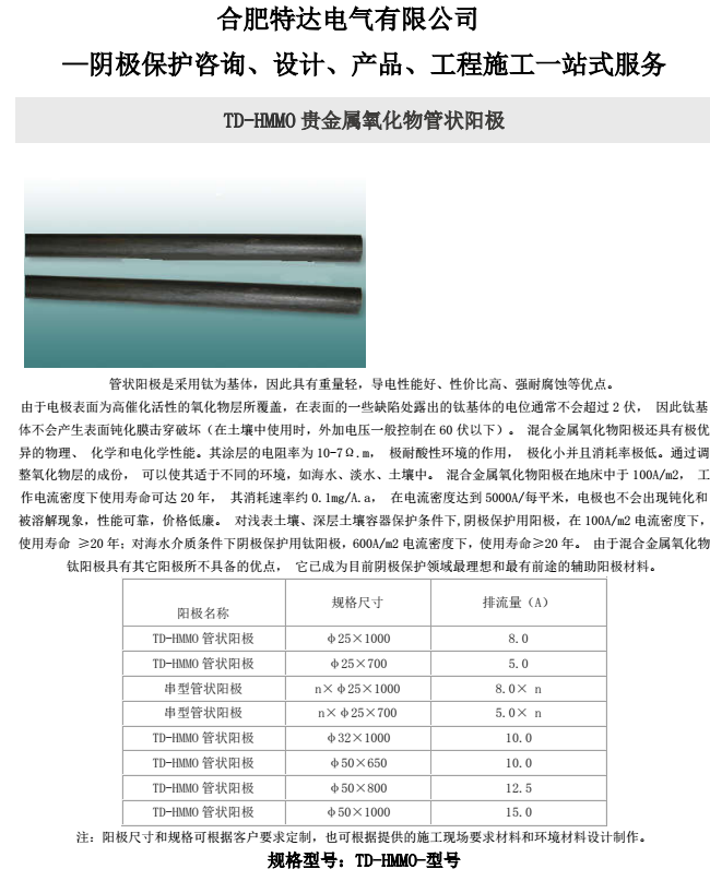 HTD-MMO贵金属氧化物管状阳极