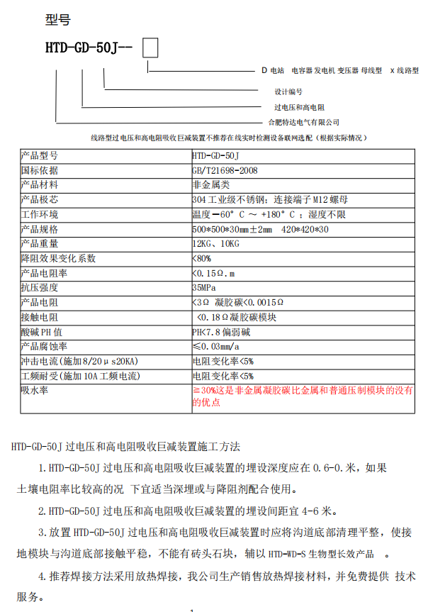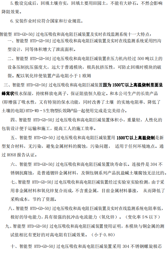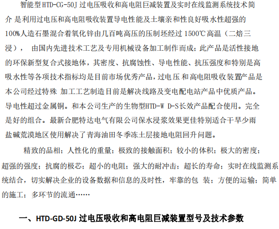 HTD-GD-50J过电压和高电阻吸收巨减装置及实时监测系统